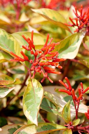 This flashy Firebush features bright green and yellow foliage with sizzling red-orange flowers from spring through fall. Upright spreader reaching 4 to 5 feet tall and wide. Perfect for creating a showy hedgerow or as an accent plant.